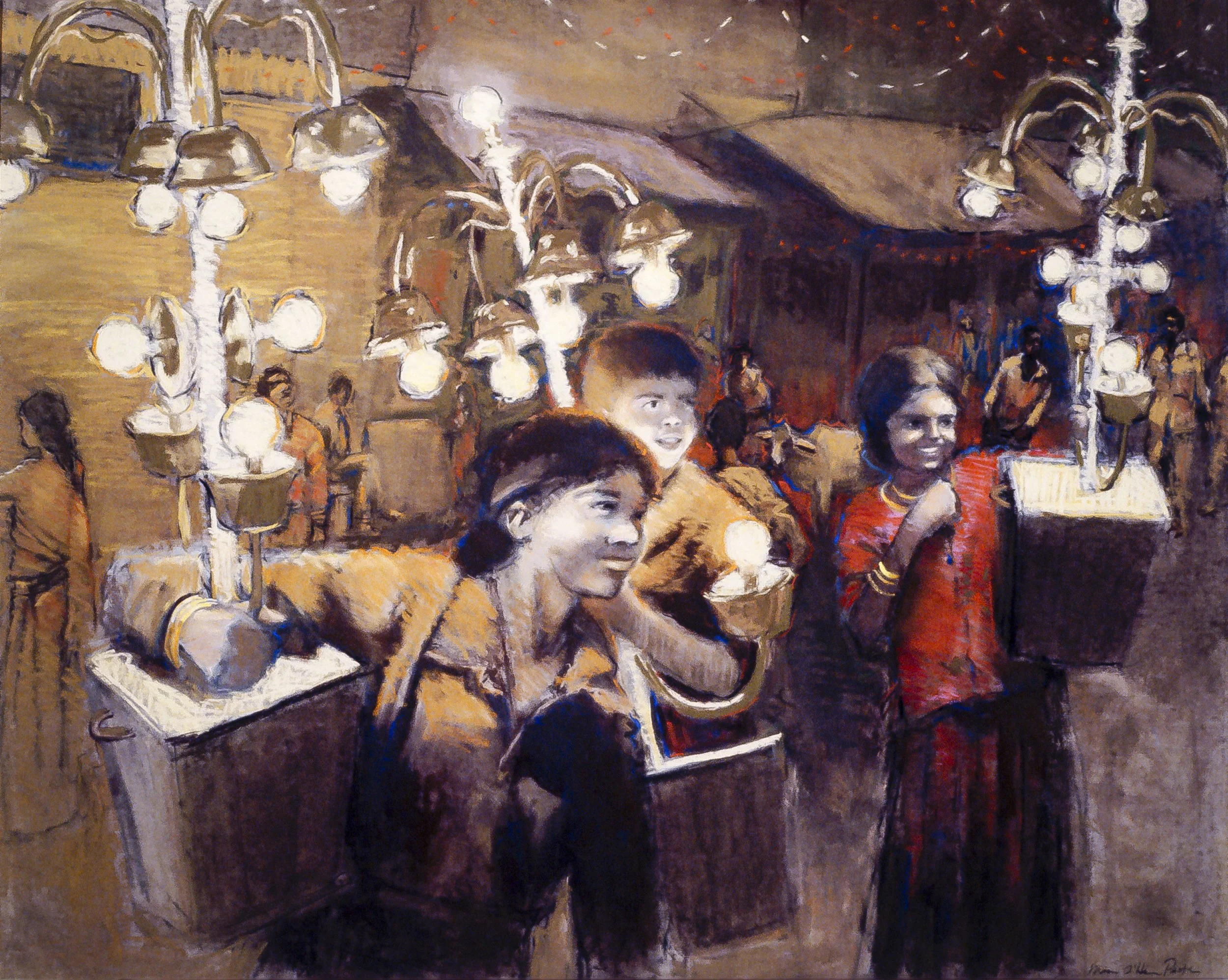 A huge flywheel spun lazily. A few of the girls​ struck ​Bollywood poses with their lights as we passed​. The camel had seen it all before. Eventually the whole thing meandered down a narrow lane.