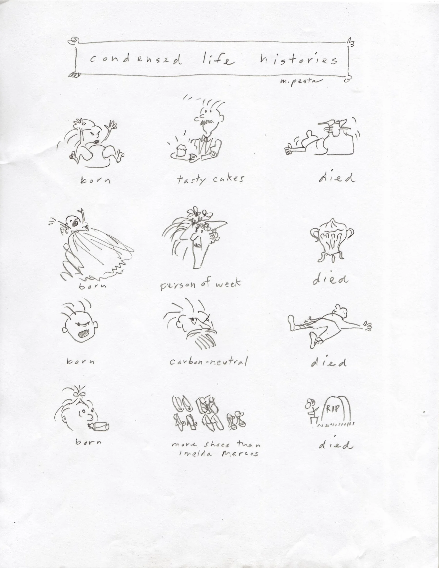 Welcome! Art, short stories, comics, essays and other things from Maureen, Jesse, Abigail and John Pesta.